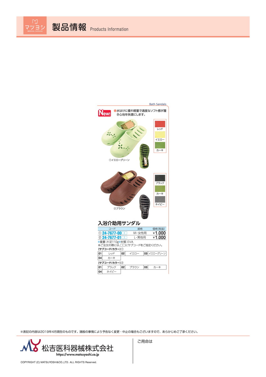 カタログコード / JANコード: 24-7677-0104 / 4562179197548 24-7677-0101 / 4562179197555 24-7677-0102 / 4562179197524 24-7677-0103 / 4562179197531 メーカー品番: ●水はけに優れ軽量で適度なソフト感が履き心地を快適にします。